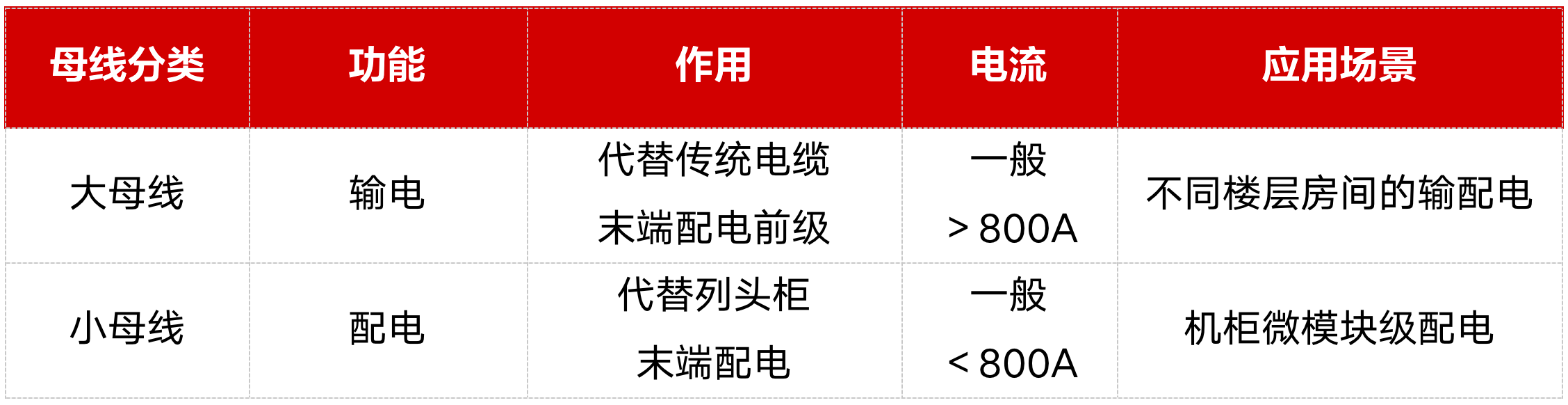 因配電柜與PDU產品相對比較成熟,這里不做詳細贅述,本文將重點介紹小母線,在介紹小母線前,為了避免與大母線混淆,這邊先做一個簡單對比介紹:
