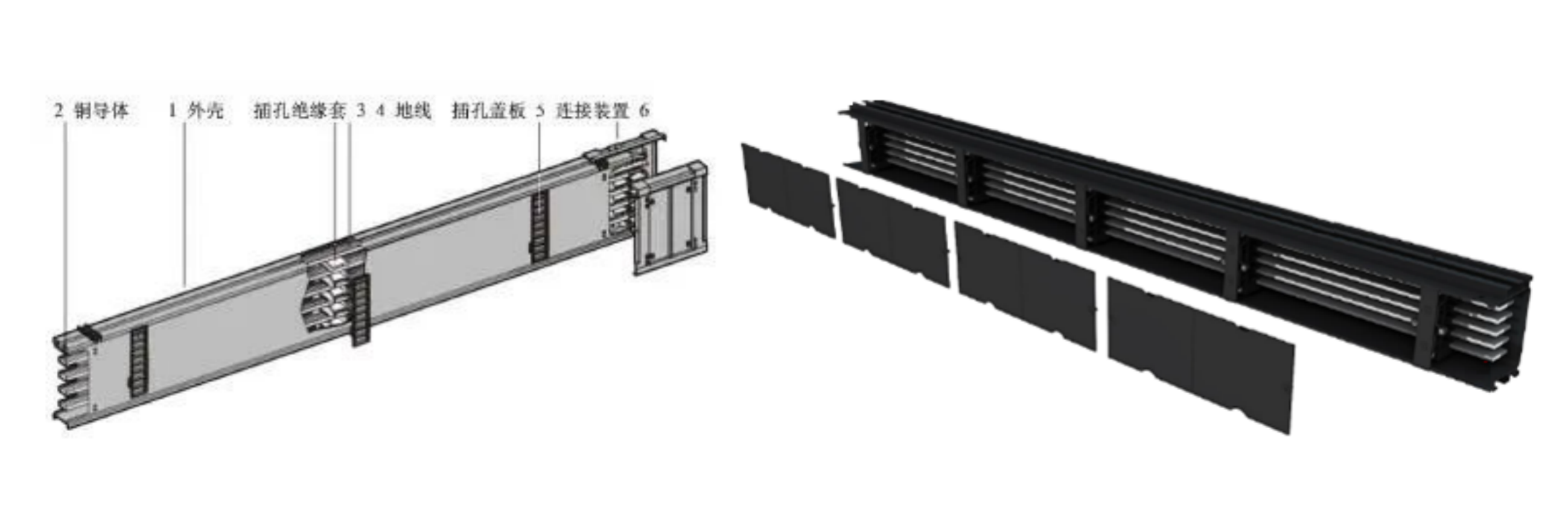 其母線槽一般采用型材設計,內部銅排與母線槽采用無夾具的固定方式,母線槽中間是一個連續中空的腔體,插接箱可以在其中任意位置進行安裝,如下圖所示。