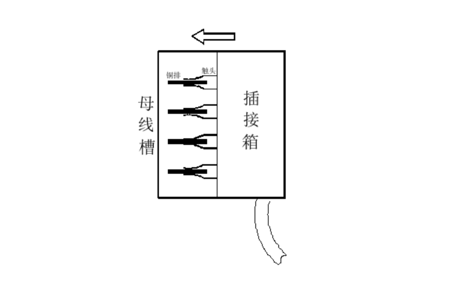 其插接箱為水平方向安裝,插接箱固定在母線槽側面。
